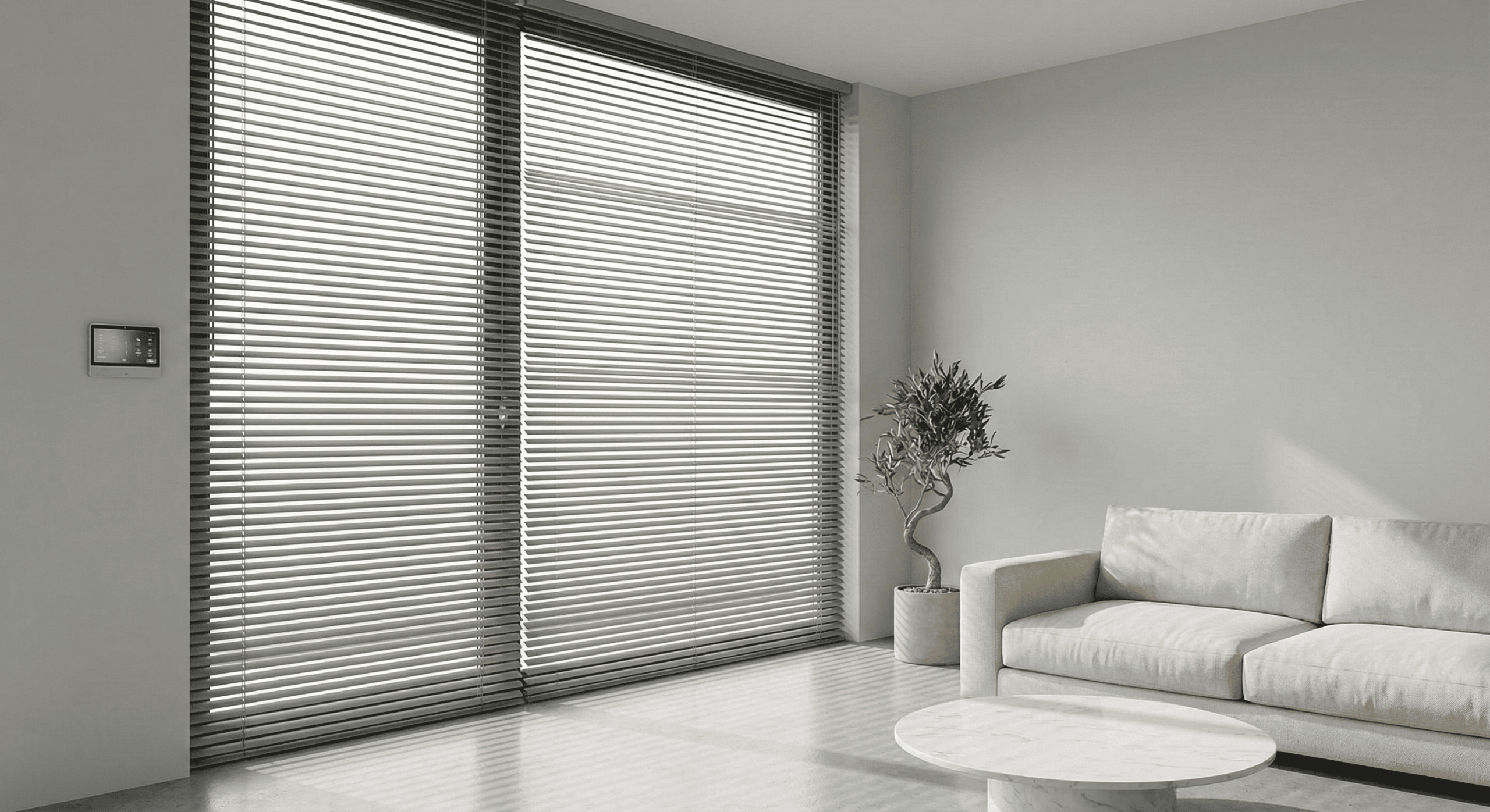 Opta por persianas en tonos neutros como gris, blanco o negro, con acabados mates o satinados. Prefiere diseños simples y lineales que aporten limpieza visual, además de motores inteligentes para un control discreto y eficiente.