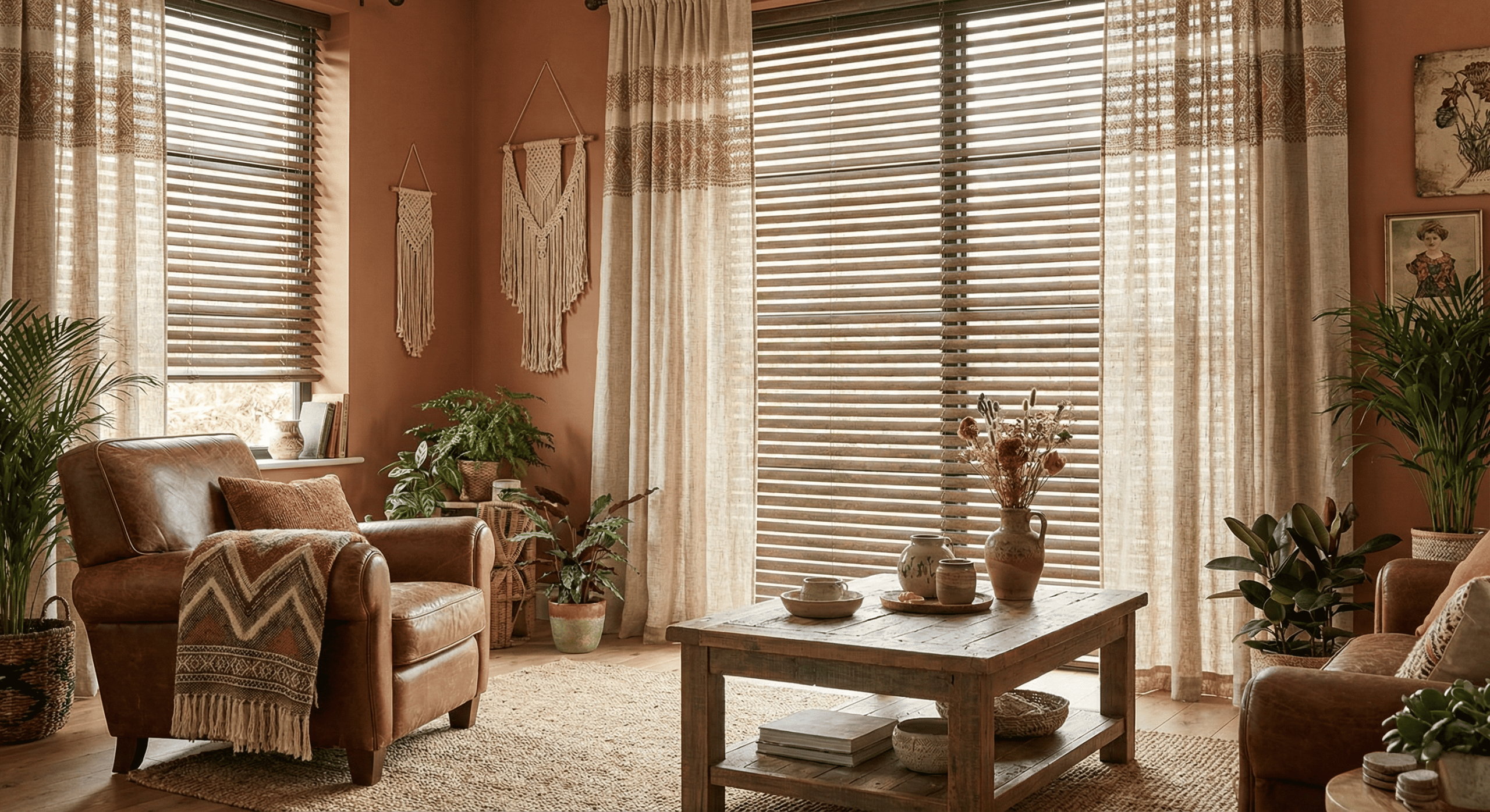 Combina persianas de aluminio en colores cálidos, como bronce o marrón, con acabados mates y detalles que imiten texturas naturales. La integración de persianas con cortinas de tejidos naturales puede agregar calidez y carácter.